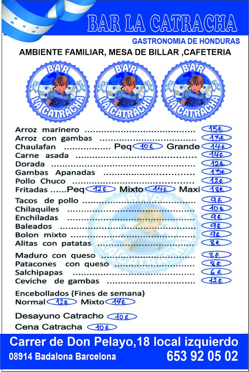 La Catracha is a vibrant café and bar nestled in the heart of Badalona, Barcelona, offering an authentic taste of Honduran cuisine. The menu shines with homemade specialties like the Tamal X2, a true 100% Honduran delight priced at €12, and Enchiladas, featuring tender beef, tortillas, and cheese for €17. Ideal for sharing, the Frita Maxi Grande pleases groups with its generous portions.